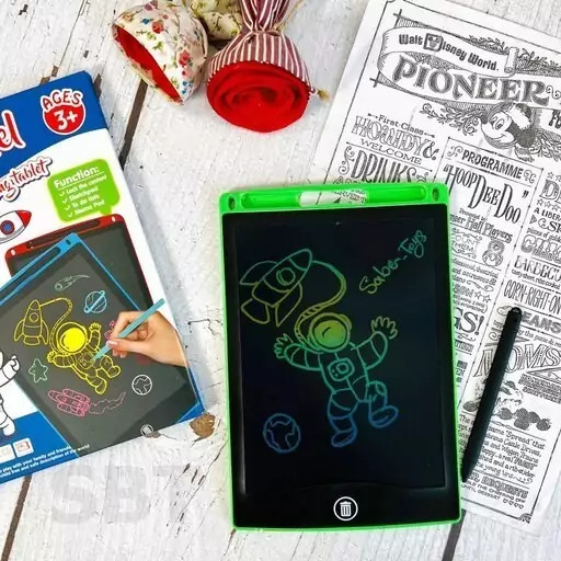 10 عددی قیمت 900 هزار تومان + ارسال رایگان مناسب فروش در لوازم تحریر اسباببازی فروشی لوازم خرازی سوپری ها این محصول در فروش و تیز فروش است با خیالت راحت خرید کنید قبل ارسال تست شده و بدون خرابی خدمتتون ارسال میشود . تبلت جادویی محصولی هست چندکاربره که هم میتوانم برای سرگرمی کودکان استفاده شود و هم به عنوان کمک درس و با شوق و اشتیاق بالای با این تبلت کار خواهند کرد روش استفاده به این صورت است است که کلید روشن رو ببینید که در پشت محصول قسمت پایین است و شروع به نوشتن و طراحی و نقاشی میکنید و بعد از استفاده کلید پاک کردن پایین صفحه رو بزنید 2فحه کامل پاک میشود . مناسب برای : کودکان از 3 سال به بالا قابل استفاده به 6نوان چرک نویس قابل استفاده در مغازه ها جهت علامیه و قیمت زنی محصولات دیر نیازی به کاغذ و کپی ندارید مخصوصا محصولاتی که قیمت آنها هر روز تغییر میکنن مثل میوه فروش ها