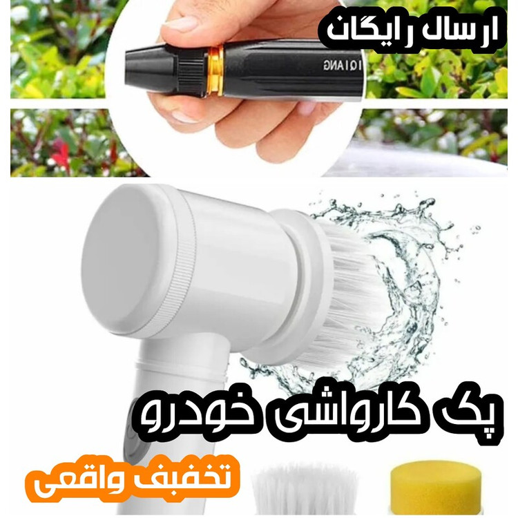 کارواش خودرو خانگی پک دو عددی کارواش خودرو سر شنلگی و برس شارژی ارسال رایگان