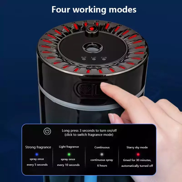 بخور سرد و پخش کننده اسانس خوشبو کننده برای خودرو و محل کار و منزل دارای چراغ لیززی زیبا که سقف ماشین رو زیبا میکنه همچنین رنگ بخور هم قرمز میشه و بسیار زیبا است این مدل شارژی است .