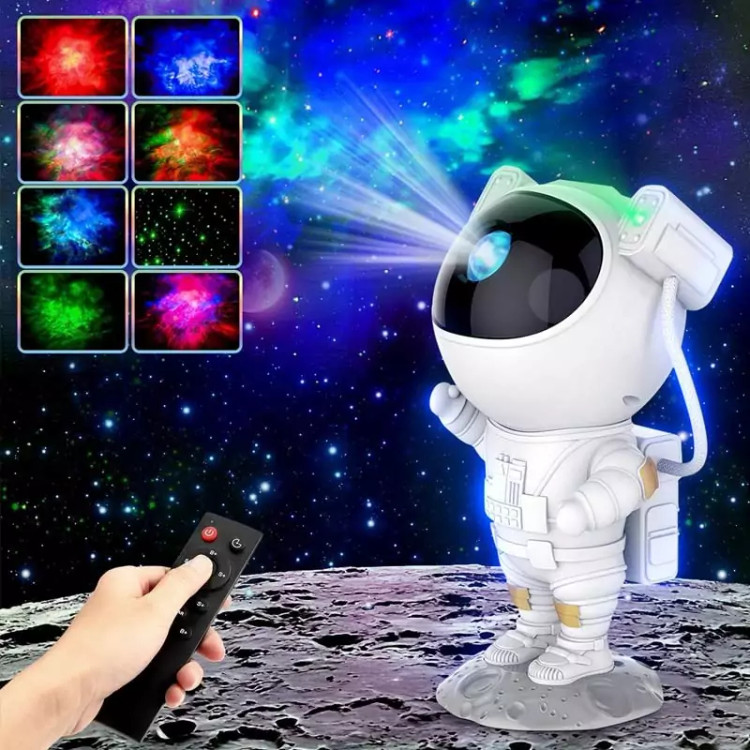 خرید چراغ خواب کهکشانی آدم فضایی چراغ شب خواب جدید با طراحی فانتزی آدم فضایی با قابلیت ایجاد روشنایی ملایم کهکشانی متحرک در 9 رنگ زیبا و متفاوت چراغ خواب آدم فضایی قابلیت پخش نور پروژکتوری دارای 9 رنگ پخش نور جالب و زیبا قابلیت تنظیم زاویه پخش نور با چرخش سر آدمک دارای ریموت کنترل از راه دور با قابلیت تنظیم تایمر روشن و خاموش شدن