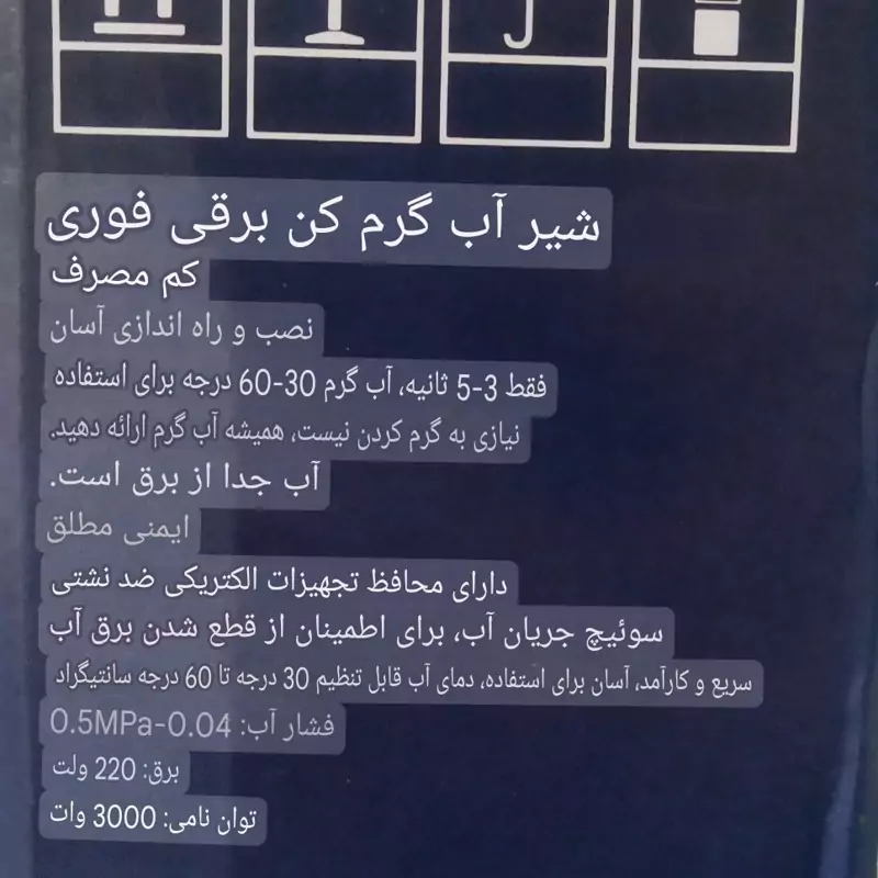 آبگرم کن برقی فوری – گرمای سریع و ایمن! آیا به دنبال یک راه حل سریع و مطمئن برای گرم کردن آب هستید؟ آبگرم کن برقی فوری ما، با قابلیت گرم کردن آب در کمتر از 30 ثانیه، بهترین انتخاب برای شماست! این محصول با طراحی استیل و بدنه فلزی، نه تنها از نظر ظاهری جذاب است، بلکه از نظر ایمنی نیز کاملاً مطمئن میباشد. ویژگیهای برجسته: - گرمایش سریع: آب را در کمتر از 30 ثانیه گرم میکند. - **ایمنی کامل:** جدا بودن برق از آب، خیال شما را راحت میکند. - کنترل دما:دما را تا 60 درجه سانتیگراد به راحتی تنظیم کنید. - قابل حمل:مناسب برای آرایشگاهها و مکانهایی که گاز ندارند. - شامل شلنگ و سردوش: برای استفاده آسان و راحت. - نمایشگر دیجیتال: به شما امکان میدهد دما را به راحتی مشاهده کنید. این آبگرم کن برقی، بهترین مدل موجود در بازار است و با کارایی بالا، به شما کمک میکند تا در هر زمان و مکانی به آب گرم دسترسی داشته باشید. با خرید این محصول، تجربهای راحت و ایمن از گرم کردن آب را تجربه کنید! برای اطلاعات بیشتر و خرید، همین حالا اقدام کنید و از گرمای سریع و ایمن لذت ببرید!