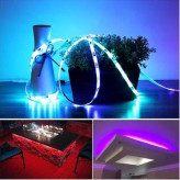 اگر تمایل دارید بدون نصاب و هزینه نمای داخلی و دکوراسیون خود را نورپردازی کنید ریسه ال ای دی دریم لایت را تهیه کنید . این محصول شامل یک نوار ال ای دی 5متری ، آداپتور 12 ولت ، درایور rgb و ریموت می باشد کافی است در هر جایی که تمایل دارید مانند زیر کابینت ، لبه پله ،لبه تخت و میز ،کناره های دیوار و یا هر جای دیگری که دوست دارید استفاده کنید. ابتدا با یک دستمال سطح مورد نظر را تمیز کرده و چسب پشت محصول را جدا کرده و ریسه را در جای مورد نظر بچسبانید .