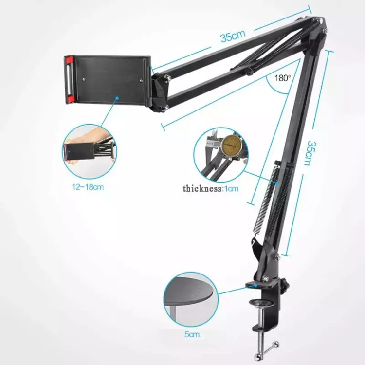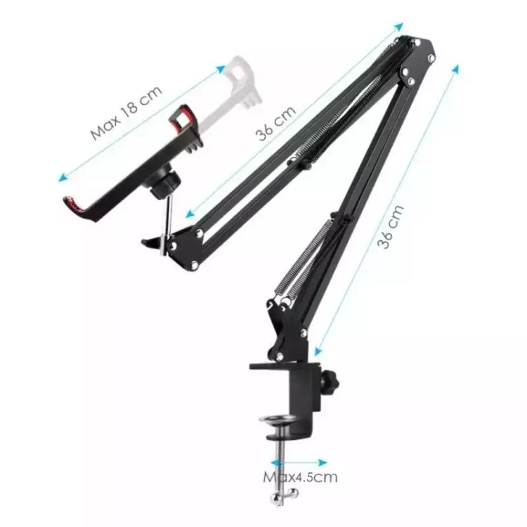 استند نگهدارنده موبایل یک پایه نگهدارنده با کیفیت است که بسیار کاربری است. شما از این پایه میتوانید به عنوان هلدر برای موبایل استفاده کنید و بسیار مناسب برای فیلمبرداری از محصولات شما فروشندگان عزیز می باشد. علاوه بر این شما می توانید برای استودیوهای خانگی، ضبط صدا و پادکست، موسیقی ، گویندگی و مصاحبه از آن استفاده کنید. این هولدر قابلیت تحمل وزن تا 1 کیلوگرم را دارد. هلدر فلزی قابلیت تغییر زاویه 180 درجه ای به بالا و پایین و 135 درجه ای به جلو عقب دارد و شما می توانید به راحتی در هر زاویه ای که نیاز دارید این استند را تنظیم کنید.
