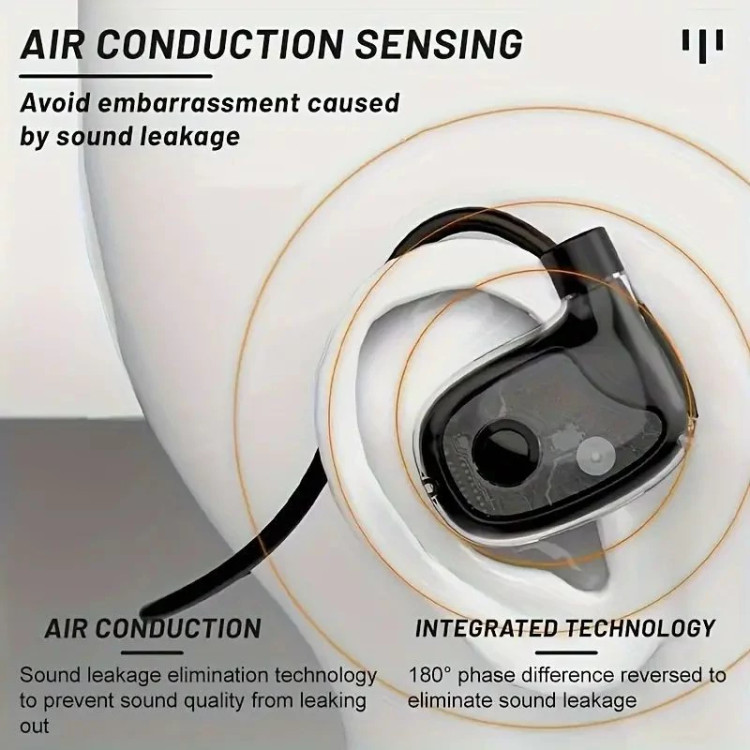 ✔️ طراحی بیرونگوش → بدون فشار داخل گوش، بدون آسیب به شنوایی و با امکان شنیدن صدای محیط (ایمنی هنگام رانندگی و کار).