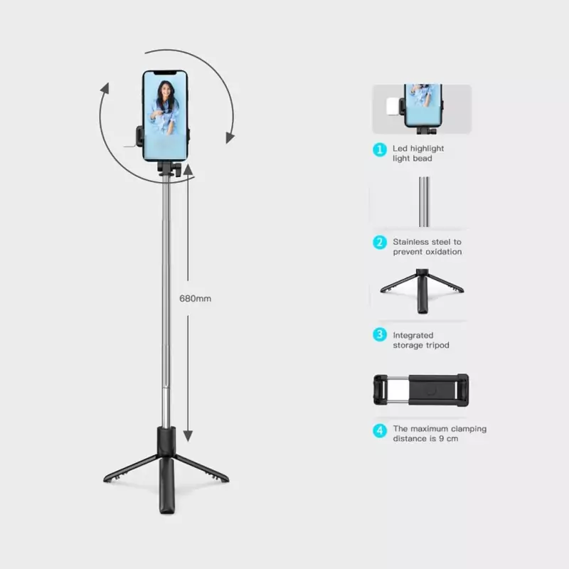 نکته مهم : این مونوپاد بلوتوثی است و شما میتونید موبایل را روی منوپاد سوار کنید و با ریموت از راه دور عکس بگیرید ( عکس های دست جمعی)